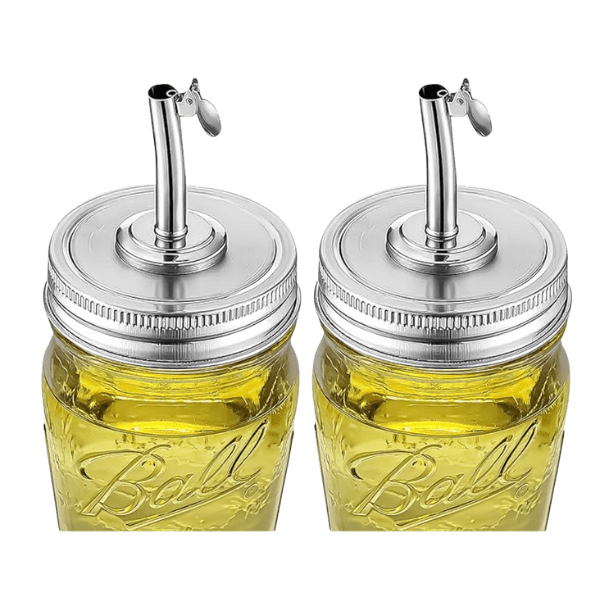 Transform your mason jars into mess-free dispensers with these stainless steel oil spout lids! Designed for Ball and Kerr regular mouth jars, they ensure smooth pouring with an automatic open-close spout and a leak-proof silicone seal.