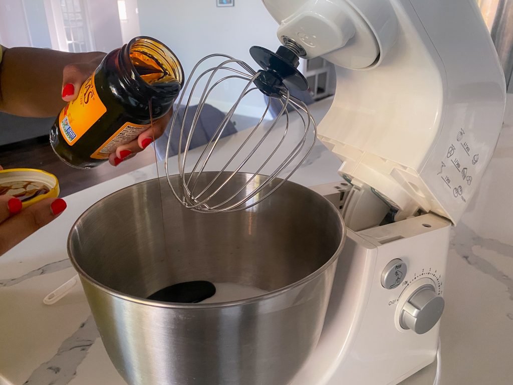 Can you take a guess at how to this if it only requires two ingredients? You simply mix it. I actually prefer to mix it by hand but you’re able to use a stand mixer if you prefer.